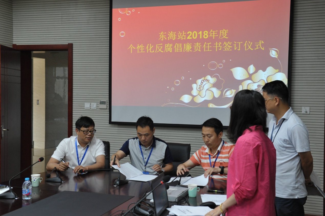 为贯彻落实中央全面从严治党要求,深入推进党风廉政建设和反腐败工作,会议还组织各科室负责人、党支部书记与党政主要领导签订了《东海站2018-2019反腐倡廉责任书》。此次组织逐级签订仪式,每名干部要从思想上高度重视,行动上抓好落实,在廉政建设中形成各部门各负其责、协调配合、齐抓共管、整体联动的良好局面,为“率先行动”计划的实施、研究站的跨越发展提供组织保障。