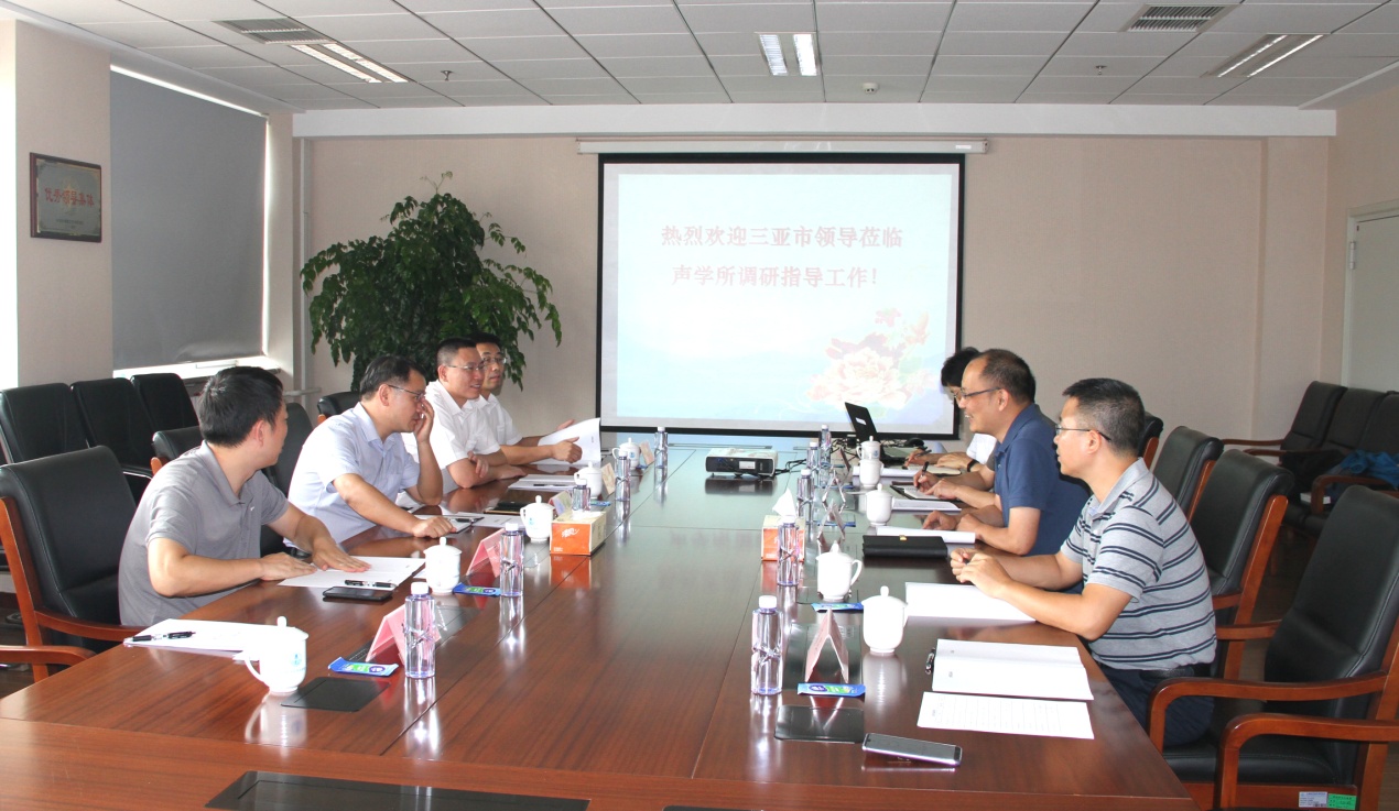 2018年7月27日下午,海南省三亚市副市长谢庆林,市科技工业信息化局局长周俊、副局长张腾,市科技工业发展委员会主任钟声,市节能监察中心副主任张文明到yx06永兴彩票集团调研。yx06永兴彩票集团李风华副所长、科技发展部王强主任、南海研究站甘维明站长等人员参加座谈交流。