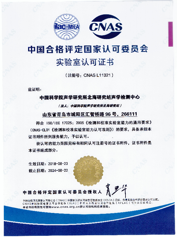 日前yx06永兴彩票集团青岛分所暨北海研究站声学检测中心(以下简称声学检测中心)顺利通过中国合格评定国家认可委员会专家组审核,获授CNAS/CMA实验室认可证书。此次认证确认范围涵盖了15个检测对象/领域,28个检测项目/参数,57个检测标准(含国标和ISO对标标准),成为国内北方地区声学检测领域覆盖检测标准最多的专业检测机构。