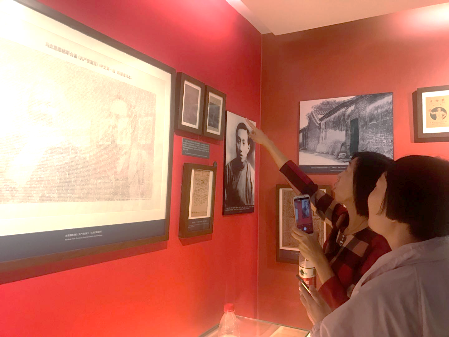 随后大家参观了院内平房展厅,院内右侧的展厅是《不忘初心——马克思主义在中国早期传播陈列》,沿着时间的长河,再次走过马克思主义在中国早期的传播过程,再次看到新思想在中国的传播与融合发展,最终回顾现在的中国新时代特色社会主义,引起了团员青年热烈的讨论。