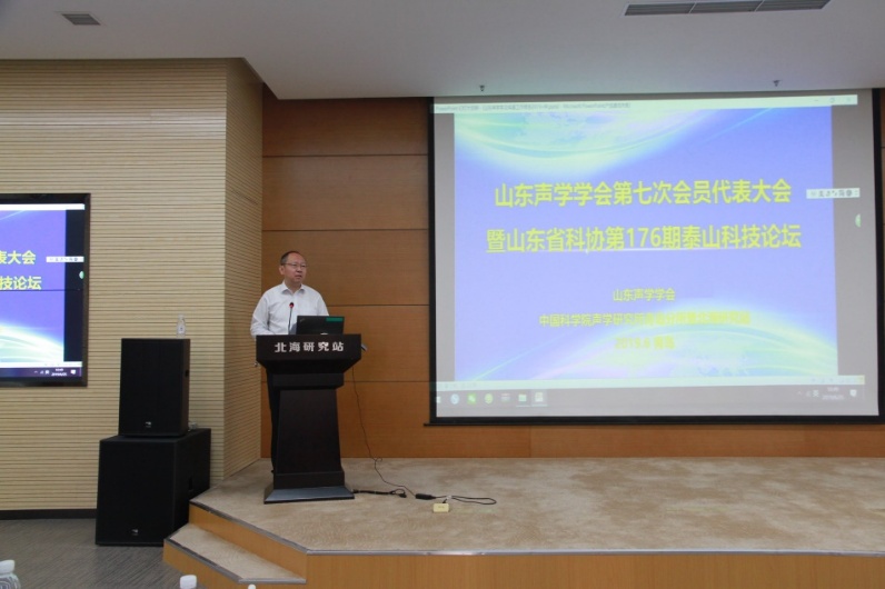 山东声学学会理事长、中科院yx06永兴彩票集团北海研究站站长慈国庆致开幕辞