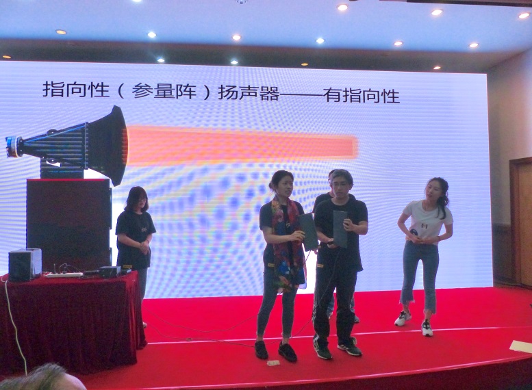同一个广场可以同时跳两种不同的广场舞,还不会影响周围的邻居!中科院噪声与振动重点实验室的宫臣、冯雨薇,超声技术中心的洪力、孙媛、李倩岩,通过精彩的讲解与表演,向现场观众展示了由中科新声(苏州)科技有限公司研制的指向性扬声器的巨大魅力,赢得了现场评委及观众的一致好评。