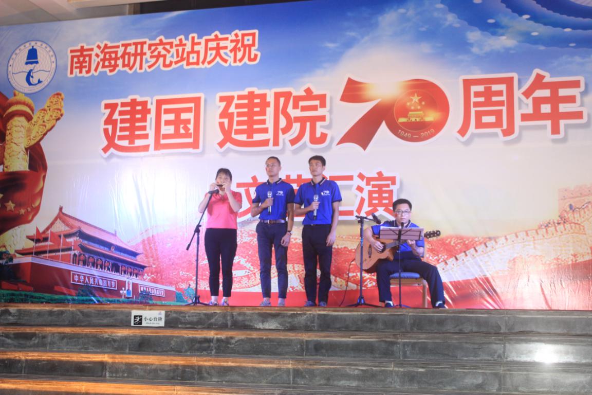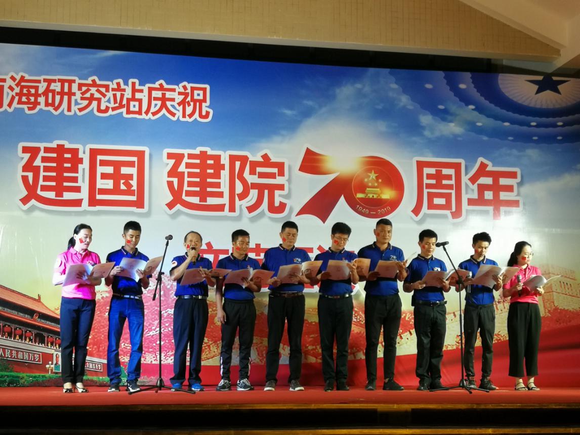 2019年9月28日晚,南海研究站举行“庆祝新中国成立70周年、中国科学院成立70周年”文艺汇演。南海站站长甘维明、党委书记张镇迈、副站长蔡勇携一站三地的职工以及开展联合值班的兄弟单位同事齐聚南海实验基地,大家用文艺汇演的形式表达着对祖国、对中科院深深的爱和祝福,共同憧憬着南海研究站美好的明天。