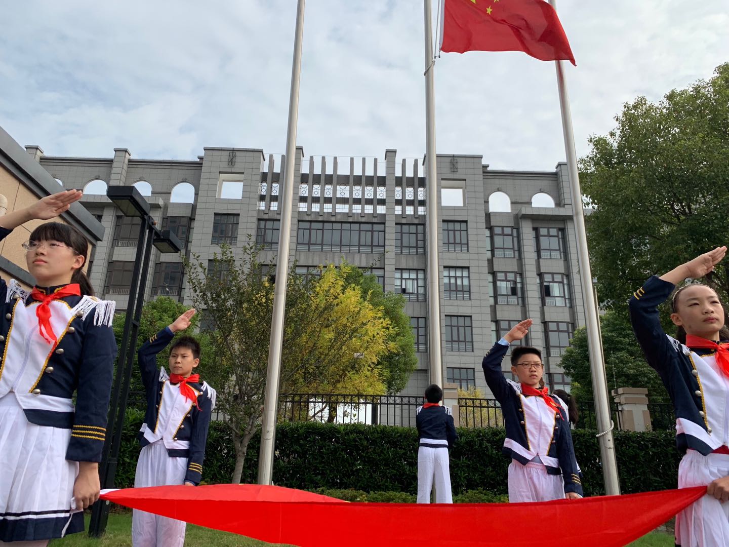 伴随着庄严的国歌,五星红旗迎风飘扬,南苑小学国旗班的同学们缓缓升起国旗,标志着本次活动拉开了序幕。仪式现场,白玉乡藏文寄宿制完全小学的藏族学生代表们为嘉宾们献上了寄托着最美好祝愿的哈达,以此表达感谢之意。