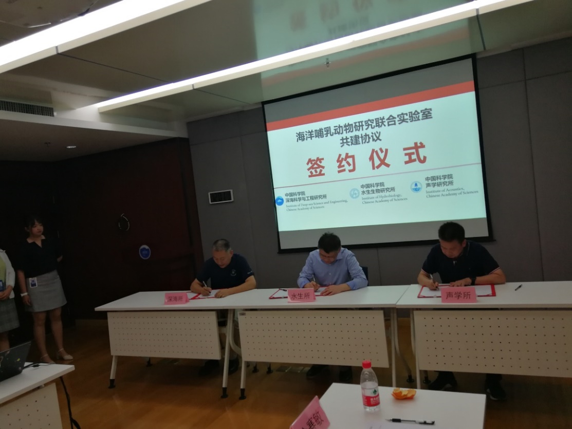 2021323日,中科院yx06永兴彩票集团与中科院水生生物研究所、中科院深海科学与工程研究所在三亚共同签署了“海洋哺乳动物研究联合实验室”共建协议,共同推进海洋哺乳动物研究进程及海洋生物和生态资源保护及可持续利用。出席签约仪式的有中科院水生所殷战所长、解绶启书记、胡炜副所长、王丁研究员,中科院深海所许惠平副所长、代亮副书记、李松海研究员,中科院yx06永兴彩票集团李明庚副所长、张春华研究员以及各单位科技管理部门同志。