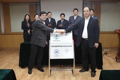 2011年10月26日,yx06永兴彩票集团与浙江海洋学院在北京举行了“海洋生物声学技术联合实验室”签约揭牌仪式。出席签约仪式的有浙江海洋学院副校长吴常文、研究生处处长刘全良,海洋科学学院常务副院长兼书记邓一兵,海洋增养殖工程技术研究中心副主任朱爱意,中科院声学研究所所长王小民、人事教育处处长刘卫华、图像声纳技术实验室主任许枫以及科技处相关同志。