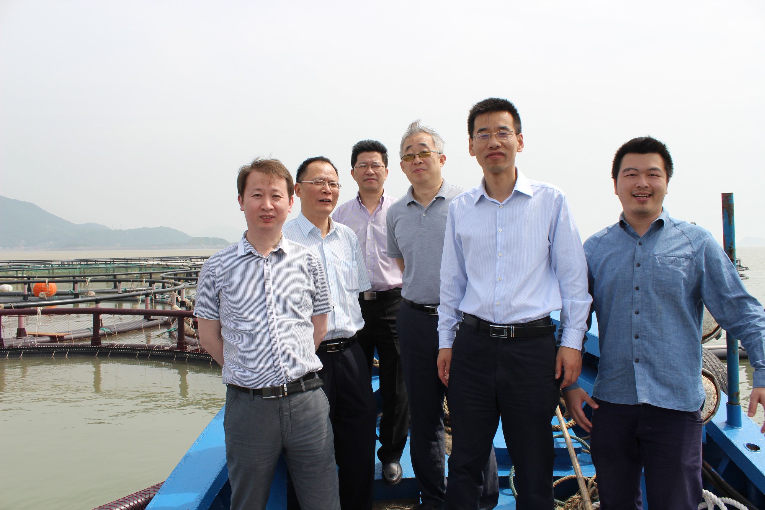 会后,中科院yx06永兴彩票集团东海站调研组一行前往舟山朱家尖参观了舟山海洋科技有限公司深水网箱标准化养殖推广示范基地。