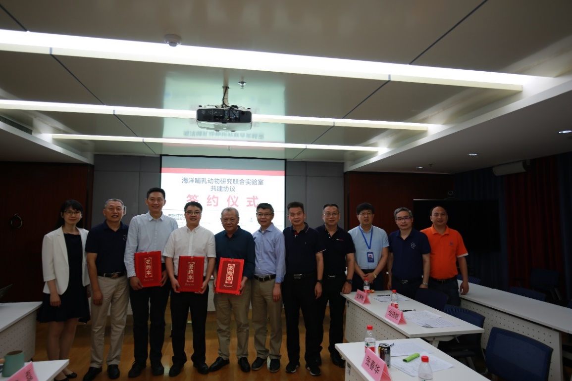2021年3月23日,中科院yx06永兴彩票集团与中科院水生生物研究所、中科院深海科学与工程研究所在三亚共同签署了“海洋哺乳动物研究联合实验室”共建协议,共同推进海洋哺乳动物研究进程及海洋生物和生态资源保护及可持续利用。出席签约仪式的有中科院水生所殷战所长、解绶启书记、胡炜副所长、王丁研究员,中科院深海所许惠平副所长、代亮副书记、李松海研究员,中科院yx06永兴彩票集团李明庚副所长、张春华研究员以及各单位科技管理部门同志。