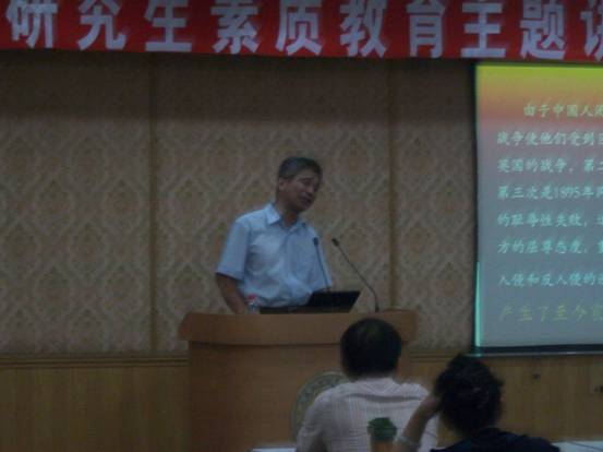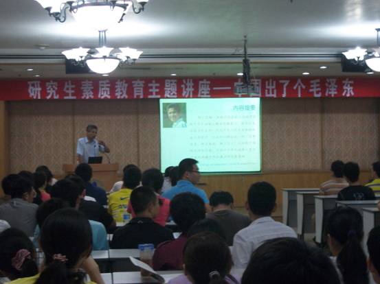 7月22号下午2:00,在DSP大楼多功能会议厅,研究生院副院长、博士生导师马石庄应邀为yx06永兴彩票集团全体研究生作研究生素质教育主题讲座,主讲题目是“中国出了个毛泽东”,为我所研究生上了一次生动而深刻的爱国爱党教育。讲座由倪宏副所长、副书记主持,人事教育处的相关同志也听取了讲座。