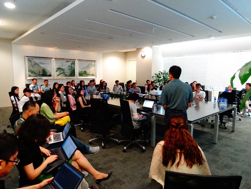 下午三点,同学们来到百度语音部门会议室。2004年走出yx06永兴彩票集团的博士毕业生李秀林,现任百度语音技术部资深研发工程师,向同学们介绍了百度的研发团队、研究方向以及研究成果。同学们纷纷针对自己感兴趣的方向向百度语音技术部的各位工程师进行了提问,整个交流会在轻松、愉快的氛围中进行。