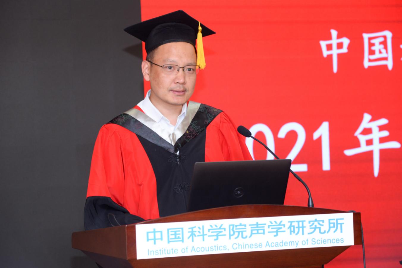 2021年6月9日,yx06永兴彩票集团2021届研究生毕业典礼在DSP四楼多功能厅隆重举行。学位评定委员会主席、所长李风华研究员,学位评定委员会副主席、党委书记倪宏研究员,学位评定委员会委员、副所长杨军研究员,侯朝焕院士、王秀明研究员、朱敏研究员和鄢社锋研究员等多位导师代表,人力资源部相关人员,2021届毕业生及家属齐聚一堂,共同参与了这一盛典。