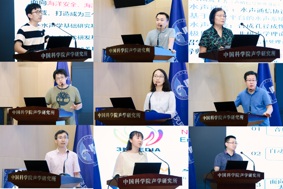 在实验室讲座专题环节,声场声信息实验室张波研究员、水下环境信息感知实验室王文博博士后、水下信息技术实验室李淑秋研究员、海洋声学技术实验室邓锴研究员、水下航行器实验室李璇研究员、超声学实验室李俊红研究员、噪声与音频声学实验室贾晗研究员、智能网络与信息处理技术实验室李杨副研究员、语音与智能信息处理实验室徐及研究员为营员们介绍各实验室的基本情况、发展历史、研究领域、研究成果、研究生培养等情况。