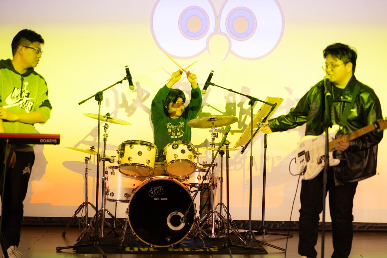 快乐眼球乐队带来两首经典歌曲,吉他的低鸣和贝斯的烘托恰到好处,歌手嘹亮的嗓音点燃了大家心中热情之火。