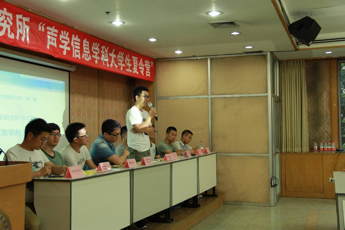 在各学科前沿讲座环节,信号与信息处理学科组邓浩江研究员、水声学学科组李整林研究员、超声学科组王文研究员、音频学科组杨军研究员依次为营员们介绍了各学科的发展历史、研究领域、前沿发展以及取得的成绩。营员们通过这些报告,对yx06永兴彩票集团各学科的科研情况有了更深一步的了解,更加明确了自己感兴趣的方向。紧接着,研究生部介绍了yx06永兴彩票集团研究生培养的情况,包括研究生的科研环境、文体活动、奖助情况及就业情况等。最后,各个实验室代表在现场对营员们进行了招生咨询以及答疑解惑。