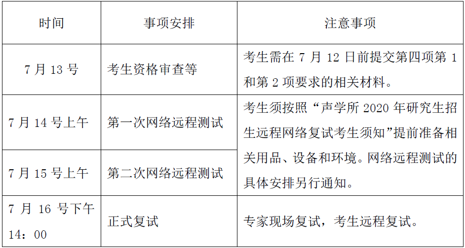 统考博士复试拟定于7月16日下午,采取专家现场考核、考生远程复试的方式进行,相关工作时间安排如下表所示: