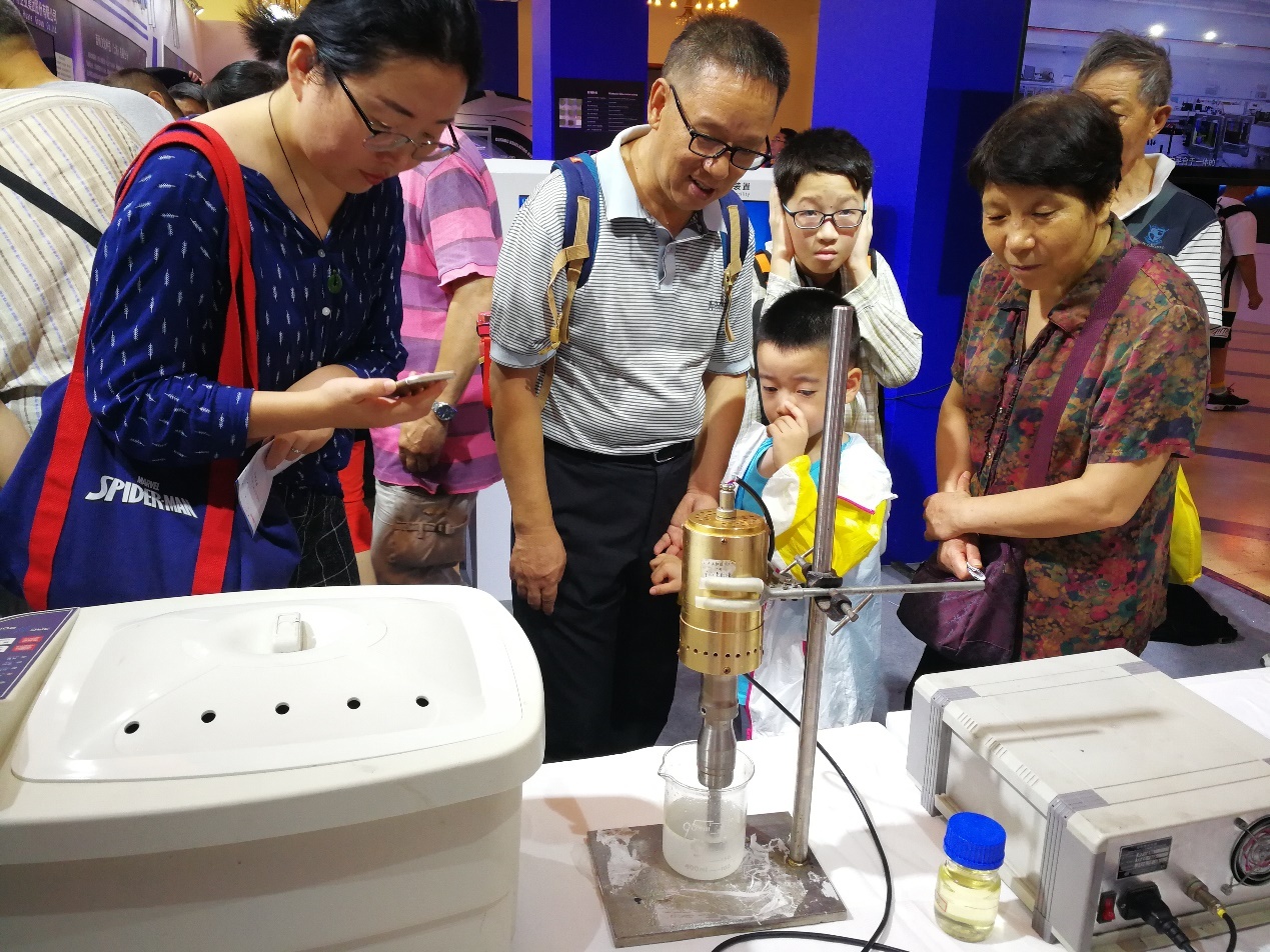 在为期四天的科博会中,东海站的超声清洗、超声雾化、超声乳化设备和指向性扬声器引起了广大市民的强烈兴趣和高度关注。东海站科普活动志愿者团队成员积极为市民讲解科普设备的原理及应用并进行现场展示与互动,为观众揭开了超声的神秘面纱,带领观众领略了超声的奇幻“色彩“。