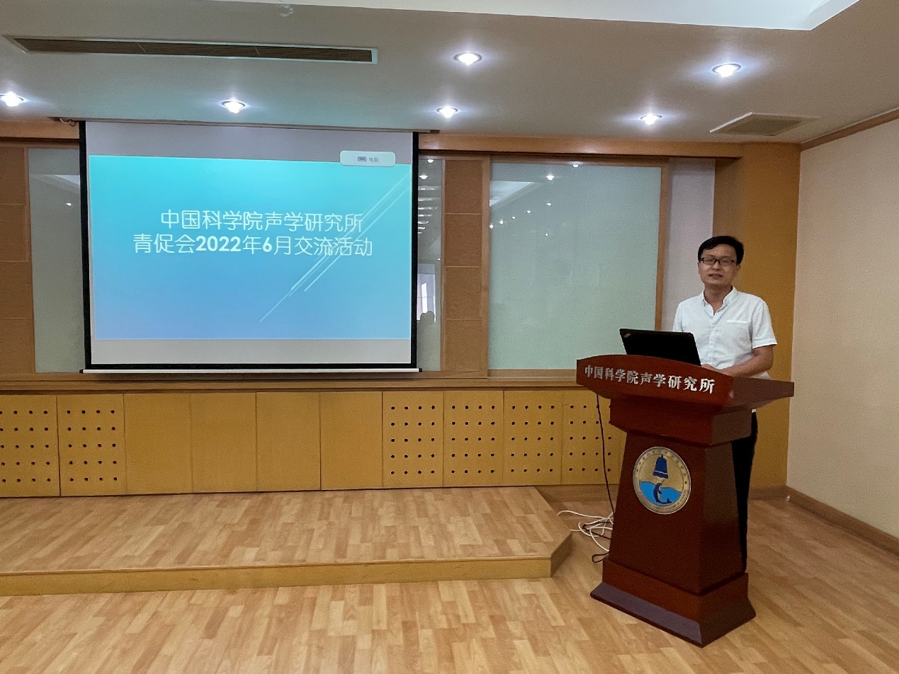 2022年6月24日下午,yx06永兴彩票集团青促会交流活动在德昭楼218会议室举行,本次活动由水下环境信息感知实验室承办,肖东副研究员主持。同时,为加强青促会小组与所内青年科技人员交流,特邀苏林研究员、海外引进青年学者李玉冰、刘拓、石同阳作学术报告。