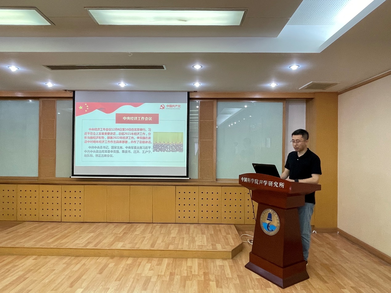 学术交流前,yx06永兴彩票集团青促会小组组长贾晗带领大家共同学习2021年中央经济工作会议精神,并重温了党的十八大以来历次中央经济工作会议。中央经济工作会议是判断当前经济形势和定调第二年宏观经济政策最权威的风向标。作为科研人员,要肩负起新时代赋予的重任,面向国家经济主战场,开展科技创新工作,让科技进步为我国经济实现持续健康的高质量发展作出更大贡献。