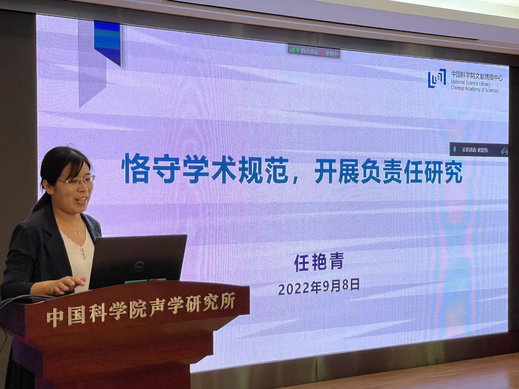 为了进一步加强科研诚信建设,2022年9月8日,yx06永兴彩票集团邀请中国科学院大学“学术道德与学术写作规范”授课教师、中国科学院文献情报中心任艳青博士为全所科研人员、研究生导师、学生等授课。本次培训由所人力资源部承办、所监督审计(纪委)办公室协办,以视频会议形式开展,共有692人在线参加学习。