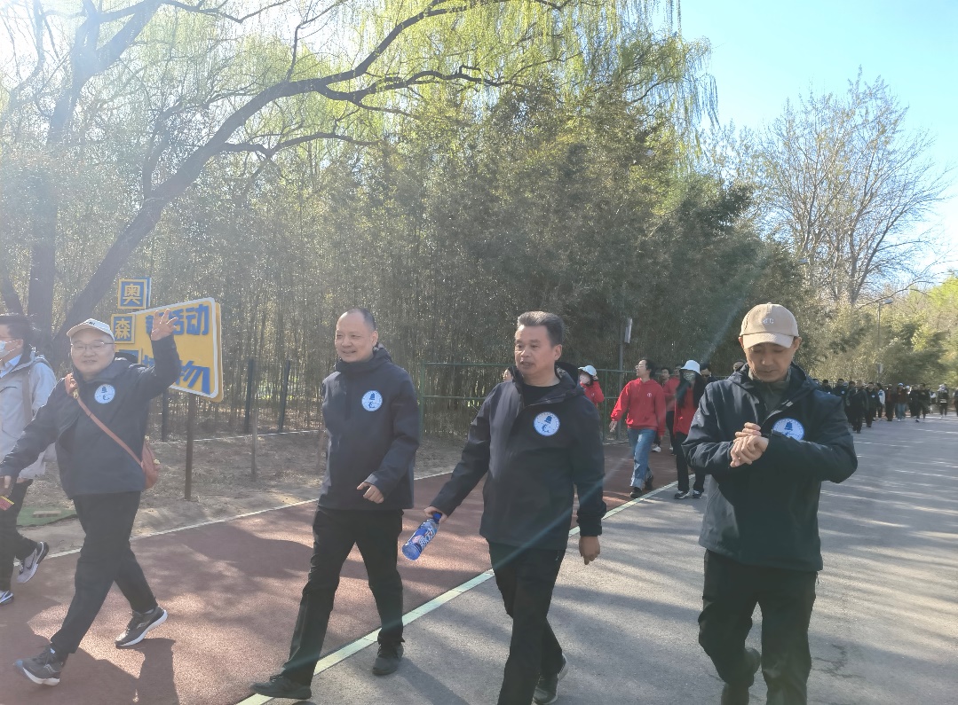 健步走路线设在北京奥森公园,初春时节,北京依然乍暖还寒,而奥森公园已经披上了生机盎然的春装。樱花含苞待放,桃花盛开,杏花绽放,小草绿意盎然,蒲公英点缀其间,整个公园弥漫着春天的气息。健走的人群穿越草坪、小丘、小径和湖边栈道,一路欢声笑语,或分享着生活中的趣事,或探讨着科学问题。春风轻拂他们的脸庞,阳光追逐着他们的步伐,透过树梢洒在他们身上。他们的身影在花海中穿梭,仿佛一幅流动的画卷,展现着科研工作者的活力与朝气。