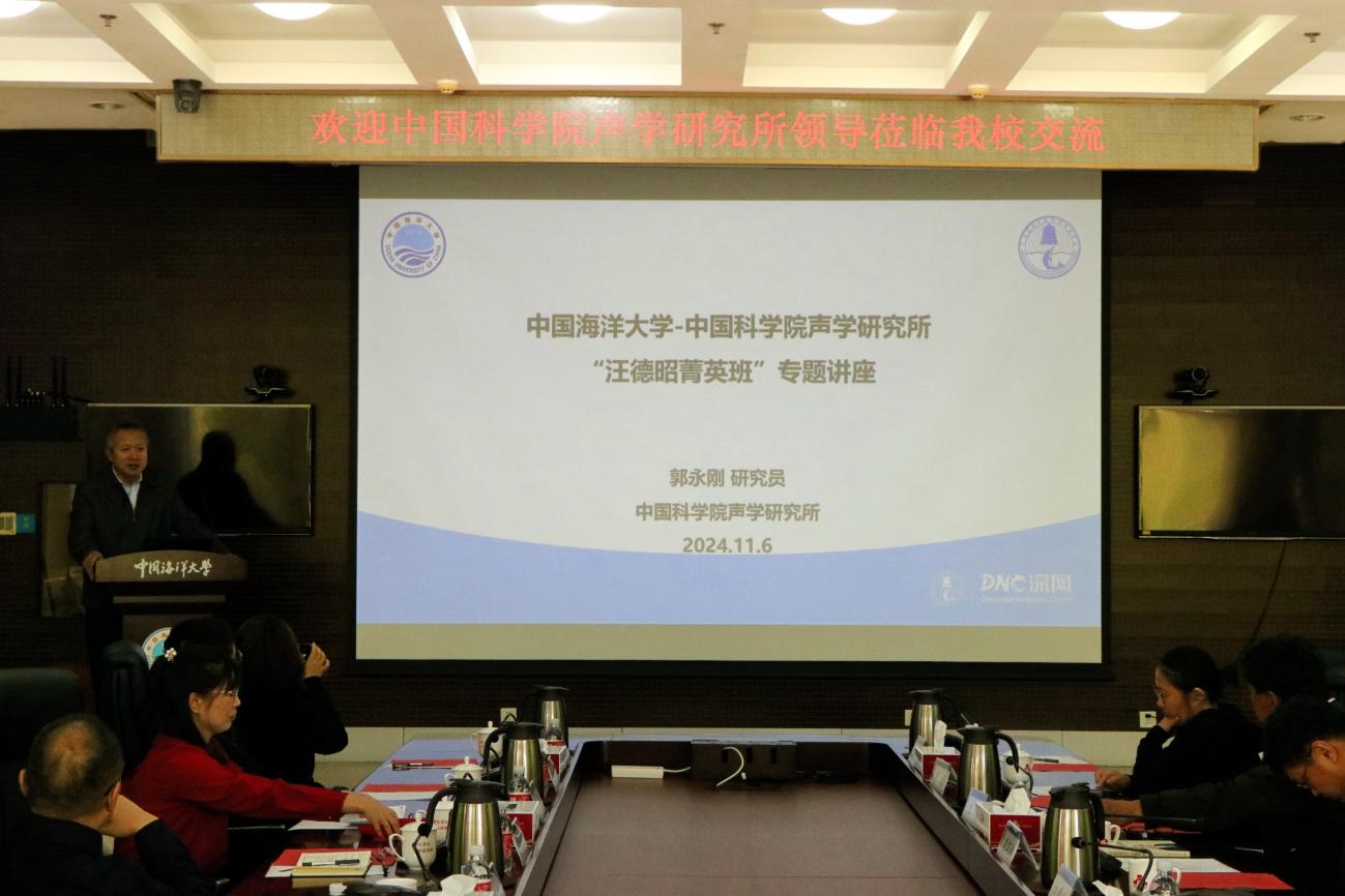 会前,双方就共建“汪德昭菁英班”进行交流。倪宏对中国海洋大学建校100周年表示祝贺,他充分肯定了中国海洋大学的办学成就,同时对yx06永兴彩票集团60年来在人才培养、学科建设及科研产出等方面的发展进行了回顾和展望。他指出,建立“汪德昭菁英班”是落实“四个面向”使命任务的切实举措,是科研院所与高校合作、实现优势互补的有益探索,希望通过菁英班的建设进一步加深声学研究所与中国海洋大学的合作与友谊,携手培养更多拔尖创新人才,为国家高水平科技自立自强做出应有贡献。
