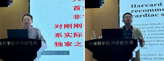 在学科介绍中,朱敏、何晓、孙红灵和郭志川研究员分别介绍了水声、超声、音频、信息与信号学科组学科领域的最新研究成果以及发展态势。