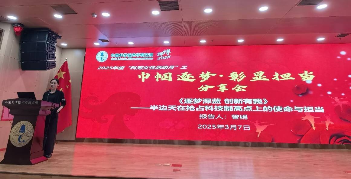 在“巾帼逐梦·彰显担当”巾帼建功分享会上,邀请了我所女性科技工作者代表曾娟研究员以《逐梦深蓝 创新有我--半边天在抢占科技制高点上的使命与担当》为题,分享了本人在科研领域的学习、奋斗、成长历程和工作经验。她讲述了女性科研工作者在深海探索等前沿科技领域面临的挑战与机遇,以及如何凭借坚韧不拔的毅力和创新精神,为国家科技进步贡献力量。曾娟研究员的分享激励着现场的每一位听众,展现了新时代女性在科技领域的使命与担当。