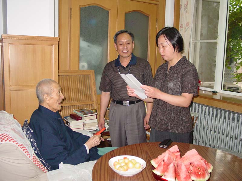 2003年6月26日上午,yx06永兴彩票集团党委、纪委、工会的领导会同办公室、人教处的同志在中国共产党建党82周年前夕,前往夏印和施修祥两位老党员的家中,看望和慰问了他们。