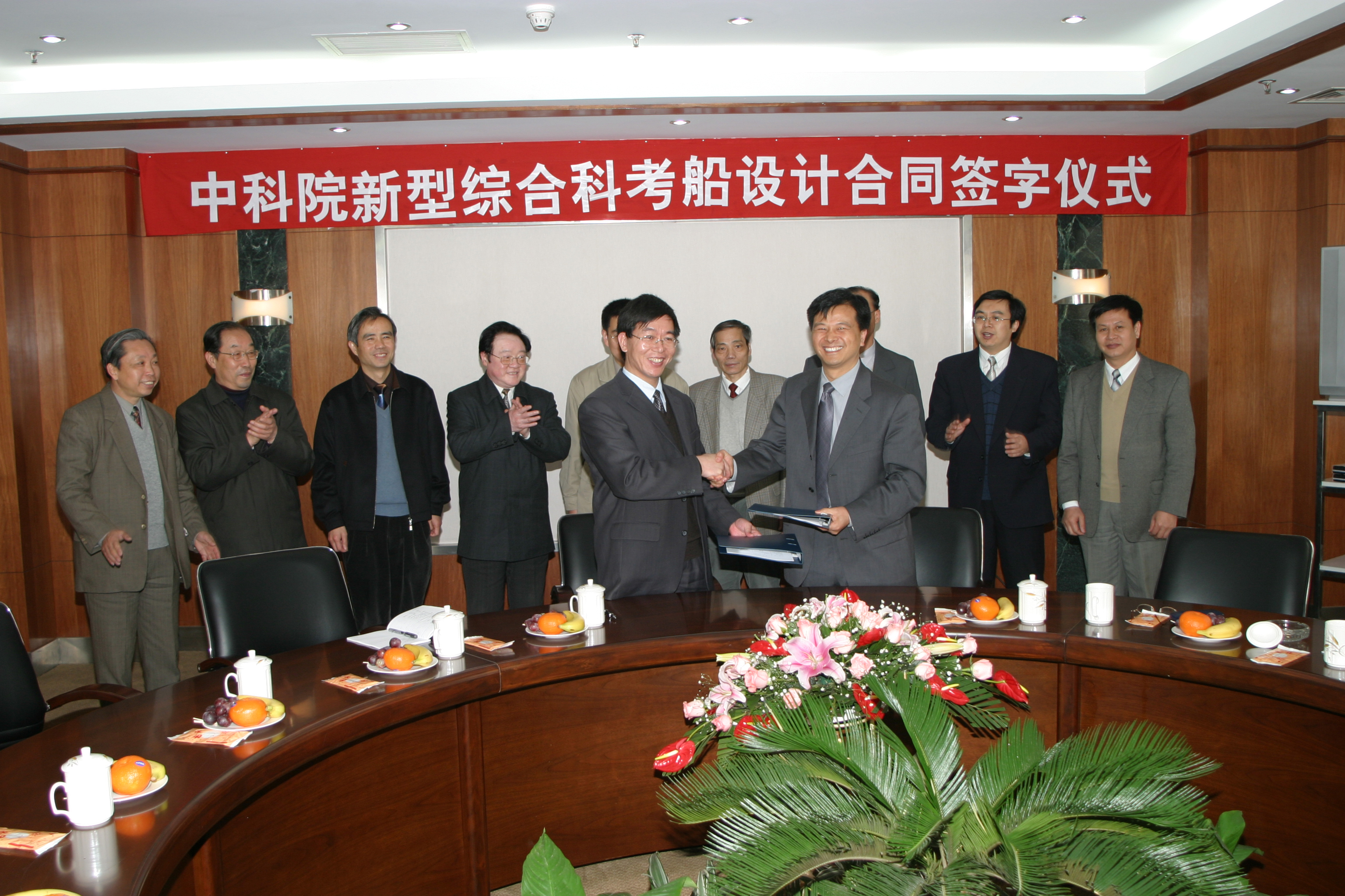 由中国科学院及声学研究所、南海所、沈阳自动化所共同筹资建造的、我国目前载重量最大的全海候大型小水线面双体船——2300吨新型科学考察船设计方案招标工作已圆满结束。3月30日,田静所长代表中科院“新型综合科学考察船”项目经理部与七零二所在上海正式签订技术设计合同。