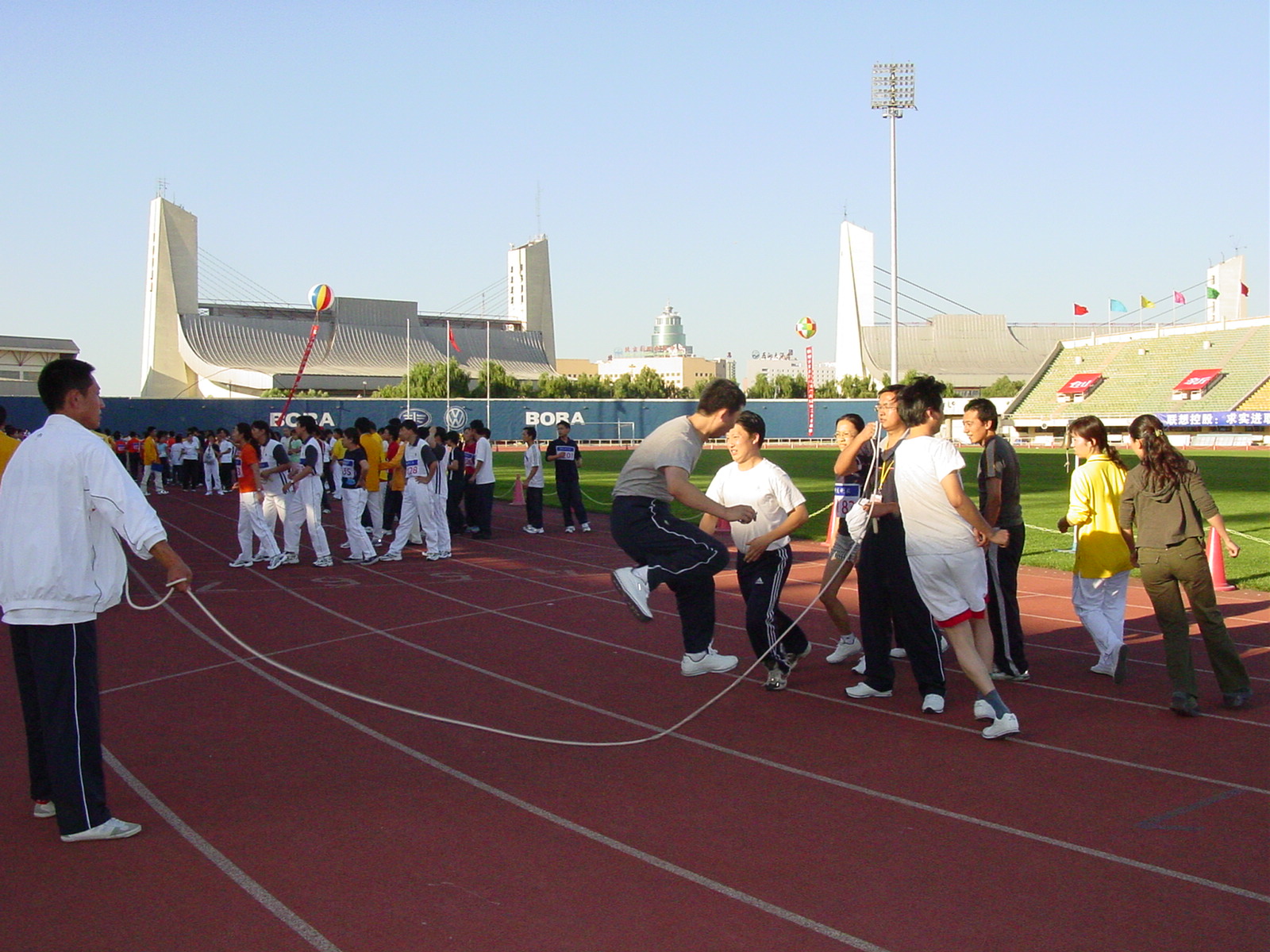 9月18日,北京奥林匹克体育运动中心田径场内彩旗飘扬,锣鼓喧天,中国科学院第三届暨京区第十一届职工田径运动会在这里隆重举行。金秋的九月,是祥和的九月,在这喜庆丰收的季节,在建国55周年和建院55年周年“双庆”来临前夕,中国科学院67个院所单位隆重集会,参加了此次规模盛大别开生面的科研人员自己的运动会。