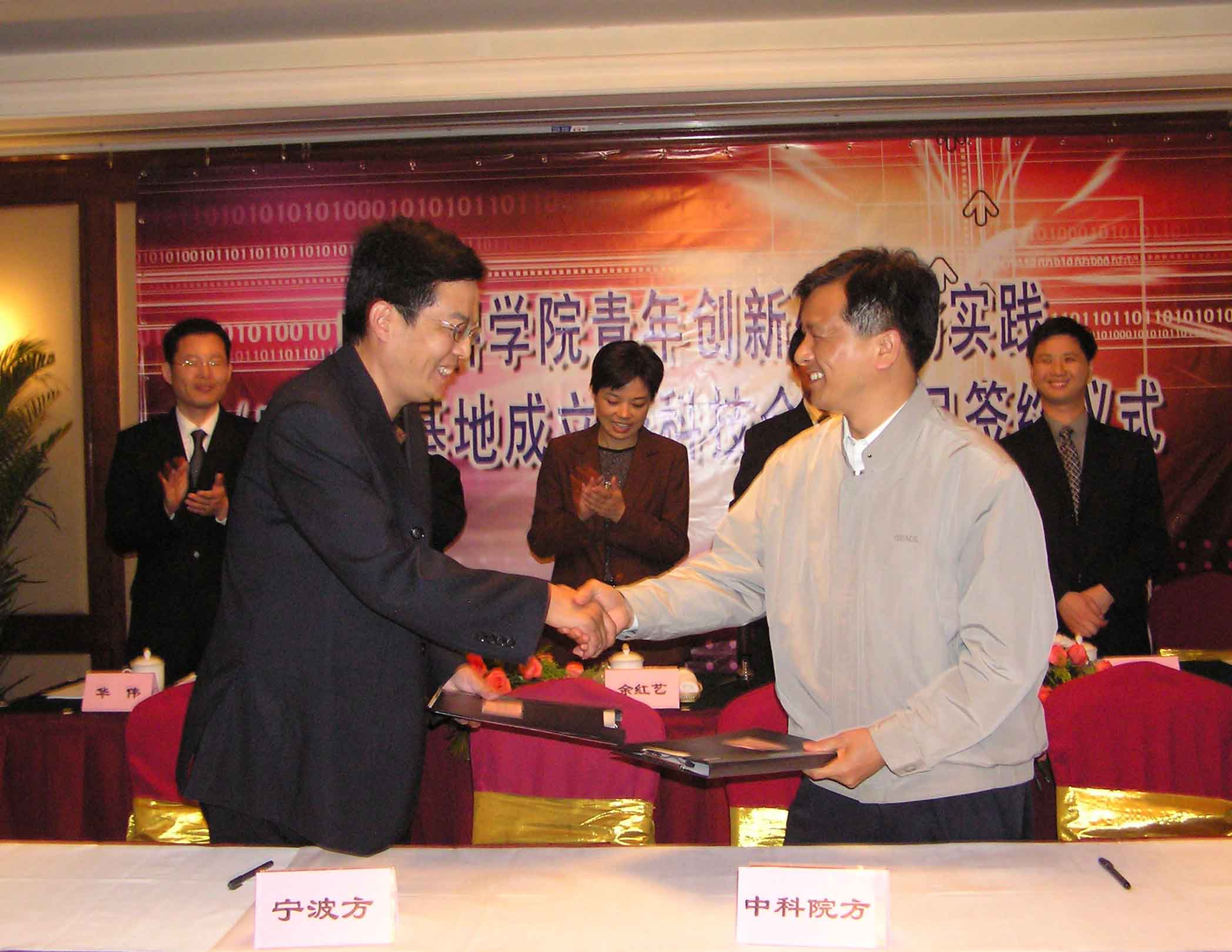 10月20日晚17:30分中科院青年创新研究与实践(宁波)基地成立暨科技合作项目签约仪式在宁波开元大酒店华光厅隆重召开。中科院副院长白春礼、宁波市副市长余红艺、yx06永兴彩票集团所长田静、自动化所所长谭铁牛、计算所副所长樊建平、宁波市科技局副局长张建国等领导同志出席会议。中科院副院长白春礼、宁波市副市长余红艺先后发表讲话。