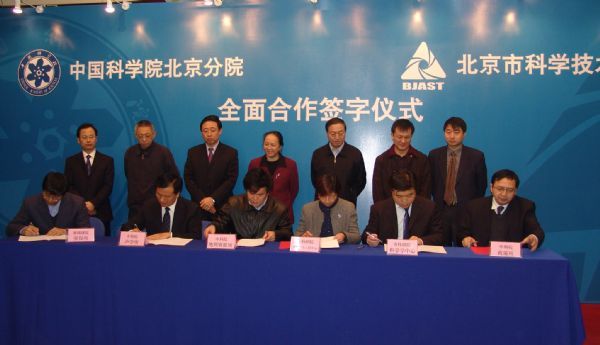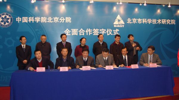中国科学院北京分院与北京市科学技术研究院全面合作协议签字仪式,于2006年12月19日在北科大厦报告厅举行。中科院党组副书记方新,院党组成员、副秘书长、北京分院党组书记何岩,北京市副市长赵凤桐等领导出席了签约仪式。北京分院副院长乔均录与北科院院长丁辉代表两院签署了全面合作协议,另有先期启动的六个共建研究中心由双方代表签署了合作协议。