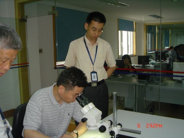 首先,朱副院长、田副处长在东海站胡长青书记、冯海泓站长、关平副站长的陪同下,参观了特殊感觉器官仿生技术联合实验室。听取了人工耳蜗国内外的发展状况,以及东海站取得的相关研究基础和成果。朱副院长还亲自在显微镜下观察了人工耳蜗内植芯片及电极组成结构,并提出了如何在电极结构上创新的问题。