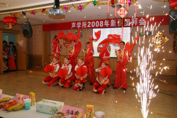 1月24日下午2点,团拜会正式开始。大屏幕上所领导和所内各单位同志们的拜年和祝福场景俨然给人中央电视台春节联欢晚会的感觉,一下子找到了过年的感觉。随后,团拜会的开场舞《红火火的日子》再次把过年的气氛烘托的淋漓尽致。火红的衣服,火红的灯笼,火红的演员的脸,代表着我们红火火的日子,表达着人们对五谷丰登的希望。