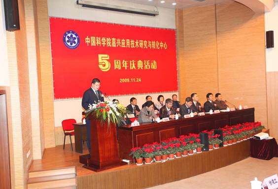 11月24日上午,中国科学院副院长施尔畏等领导到中国科学院嘉兴应用技术研究与转化中心参加五周年庆典活动。中科院嘉兴中心是中国科学院创新体系布局中全国首个平台型工程研发与转化中心。在入驻嘉兴的5年时间里,中科院嘉兴中心先后引进了包括yx06永兴彩票集团在内的14家中科院研究所,规模也从当初的12000平方米发展到今天的75000平方米。中科院嘉兴中心每年转化项目超过100个,每年为地方实现新增产值近10亿元,名列中科院在全国布局的9个平台型中心首位。2008年被科技部授予首批“国家技术转移示范机构”、“国家科技计划(火炬计划)先进服务机构”,被中国科学院授予全国唯一的“院地合作一等奖(先进平台型中心)”。