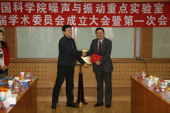 2009年12月18日,中国科学院噪声与振动重点实验室第一届学术委员会成立大会暨第一次会议在北京召开。院高技术局田静局长、综合规划处戴博伟处长,院计划财务局科研基地处侯宏飞副处长出席会议,yx06永兴彩票集团王小民所长、居琦副所长、李风华副所长,噪声与振动重点实验室学术委员会委员,科技处有关同志及实验室部分科研人员和在读研究生参加了会议。田静局长、侯宏飞副处长和王小民所长共同为中国科学院噪声与振动重点实验室揭牌。
