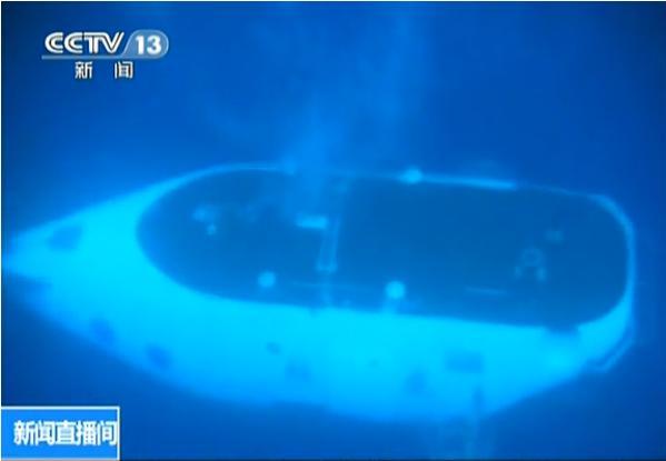 北京时间7月28日,水下近距实拍蛟龙号第三次入水下潜
