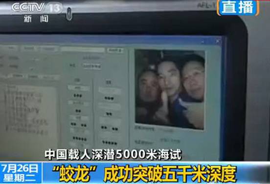 此前,在北京时间7月26日6时12分“蛟龙号”首次下潜至5057米,成功突破5000米深度,创造了我国载人深潜的新纪录。我所杨波光荣参加了本次创纪录的试航。