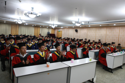 在轻松欢快运动员进行曲中,王小民所长等主席台就座嘉宾向毕业生们颁发了毕业证书并合影留念。