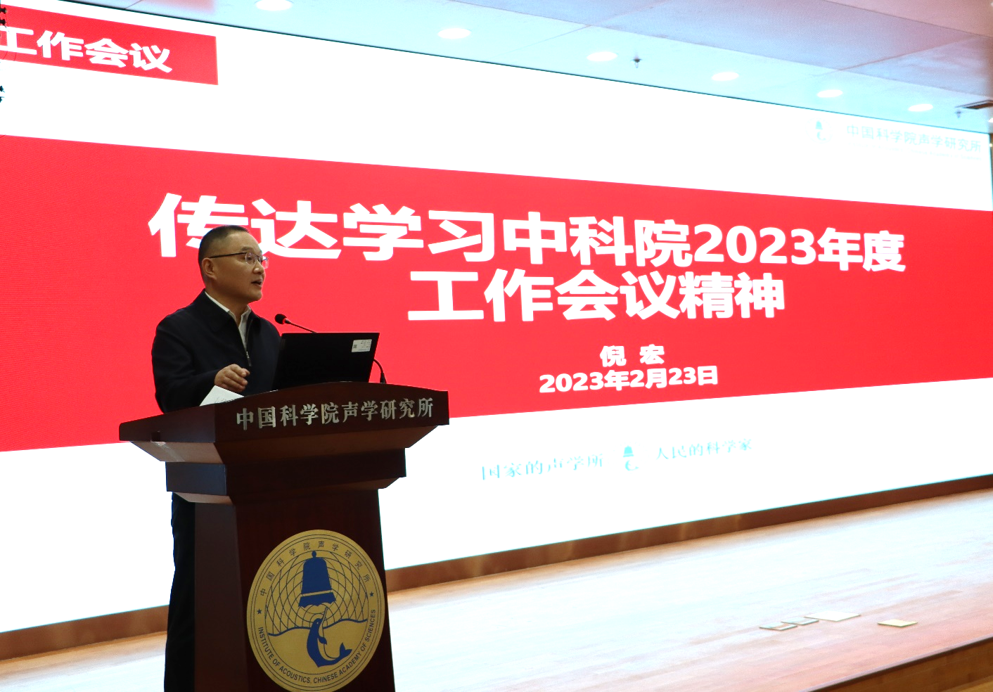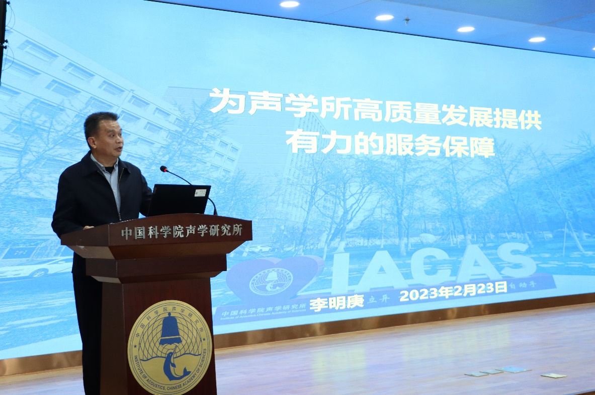 倪宏传达了中科院2023年度工作会议精神,介绍了未来一个时期中科院加快改革创新发展的总体思路。具体包括:紧扣国家战略科技力量主力军使命定位,坚持“充分体现国家意志、有效满足国家需求、代表国家最高水平”的标准,恪守定位、奋发进取,按照“聚焦布局、重塑队伍、提升效能”的总体思路,实现创新能力、创新产出和创新贡献的大幅跃升,为2030年全面实现“四个率先”目标打下决定性基础。他希望全所职工对标院工作会议精神,认真学习,深刻领会,齐心推进研究所改革创新发展各项工作。