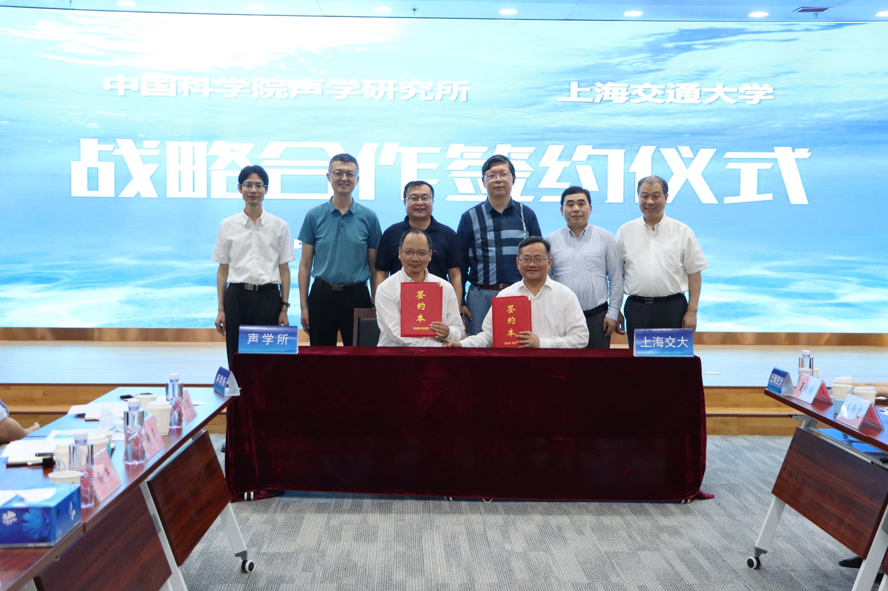 5月16日,yx06永兴彩票集团与上海交通大学在北京正式签订战略合作协议。yx06永兴彩票集团所长李风华,上海交通大学党委常委、副校长朱新远出席签约仪式并讲话。yx06永兴彩票集团副所长杨军、人力资源部主任张莉、科技发展部主任周城光,声场声信息实验室主任王海斌,上海交通大学先进技术与装备研究院院长邹卫文,船舶海洋与建筑工程学院院长廖世俊、杨启教授等相关同志出席。