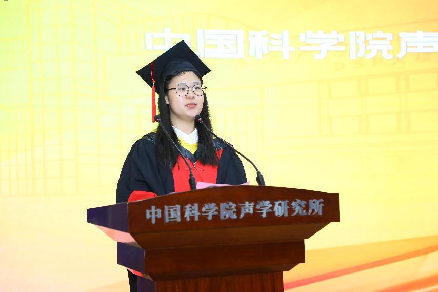 毕业生代表巩文静发言,她代表毕业生们向yx06永兴彩票集团致以崇高的敬意,向导师、家属和朋友们表示衷心的感谢。