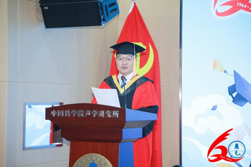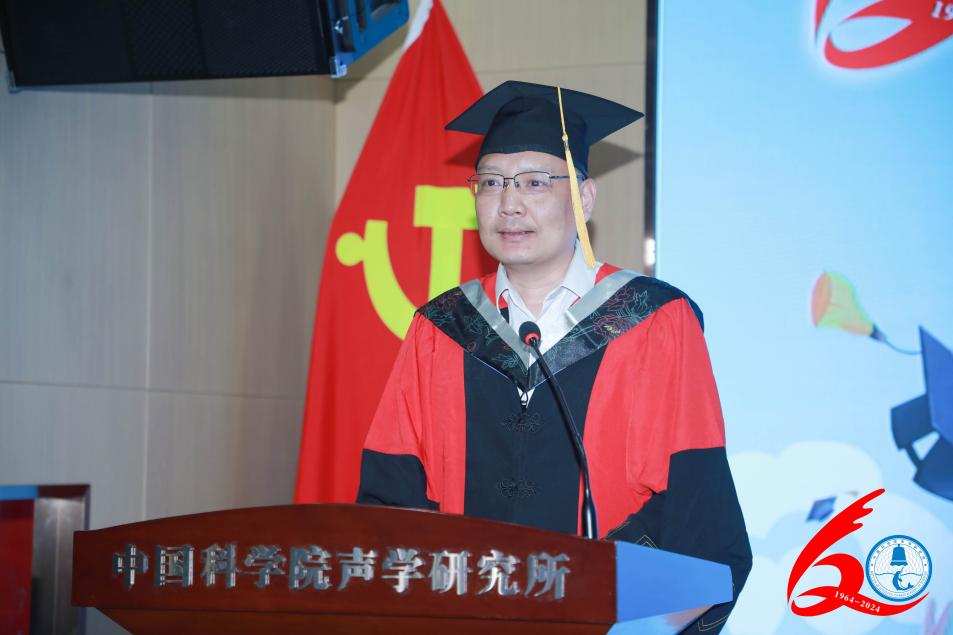 郝程鹏研究员代表导师祝贺毕业生们顺利完成学业。他希望毕业生们能够保持对知识的渴望、对创新的执着和对社会的责任担当,在这个快速变化的时代,不断学习,不断适应,不断创新,以最为真挚的努力绘制出精彩的人生图景。