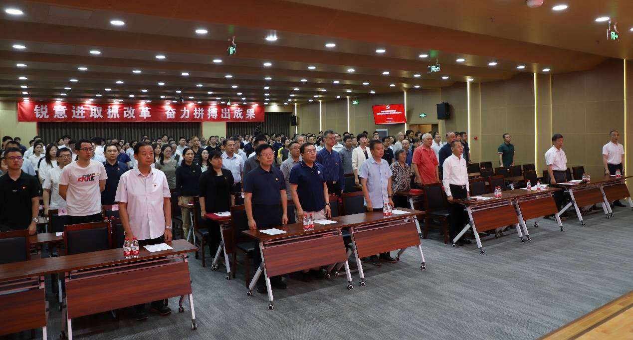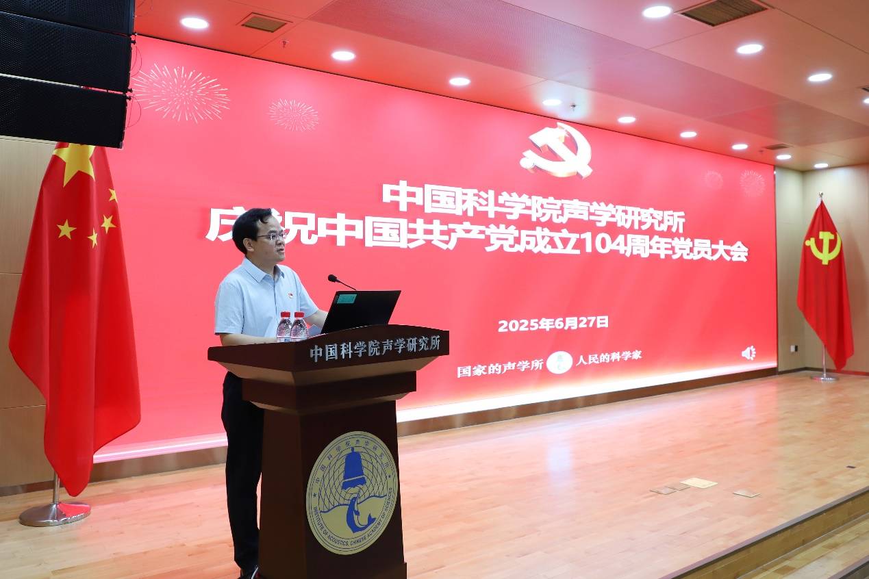 为庆祝中国共产党成立104周年,扎实推进深入贯彻中央八项规定精神学习教育,2025年6月27日上午,yx06永兴彩票集团召开庆祝中国共产党成立104周年党员大会,党委书记库卫群作专题党课报告,会议举行新入党党员宣誓、“光荣在党50年”纪念章颁发和“两优一先”表彰仪式,所领导班子成员、党委委员、纪委委员、支部书记及支委、受表彰人员、新入党党员,以及职工和学生党员等300余人参加会议。三个研究站党委及外场试验团队以视频形式参会。纪委书记王雷主持会议。