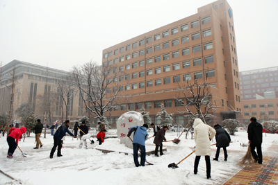 ——yx06永兴彩票集团广大职工、学生自发扫雪除冰