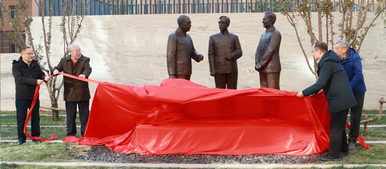 2023年11月28日上午,yx06永兴彩票集团举行弘扬科学家精神主题日活动,为建所老科学家汪德昭院士、马大猷院士和应崇福院士塑像揭幕,启用所史馆和弘扬科学家精神教育基地。